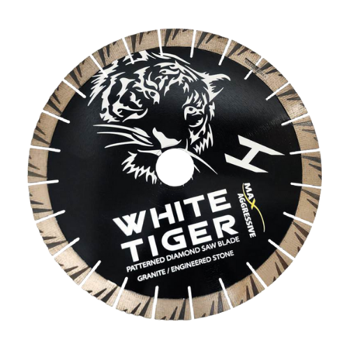 The White Tiger I bridge saw blade is revolutionizing the stone fabrication industry by setting new standards for cutting speed and blade longevity. Its highly innovative patterned design strategically distributes diamond grit into columns, increasing concentration on the densest parts of the stone. This results in straight, efficient cutting that boosts productivity while minimizing stress on the bridge saw.
