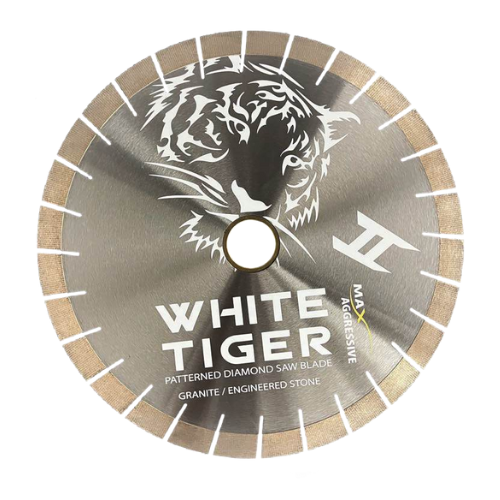 The White Tiger II bridge saw blade is engineered for superior performance and precision. Featuring a new diamond pattern and layering technology, it ensures ultra-fast, consistent cutting, even on the toughest materials like granite and engineered stone. With high diamond concentration for extra-long life and 25mm tall segments for enhanced durability, the White Tiger II is also designed for versatility, offering the capability to make precise 45° miter cuts, setting a new standard in stone fabrication.
