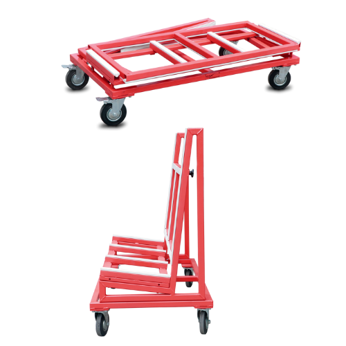 The Max Aggressive Folding Trolley Frame is designed for smooth slab transport with the added benefit of space-saving storage. Its strong construction ensures reliable performance on every job.