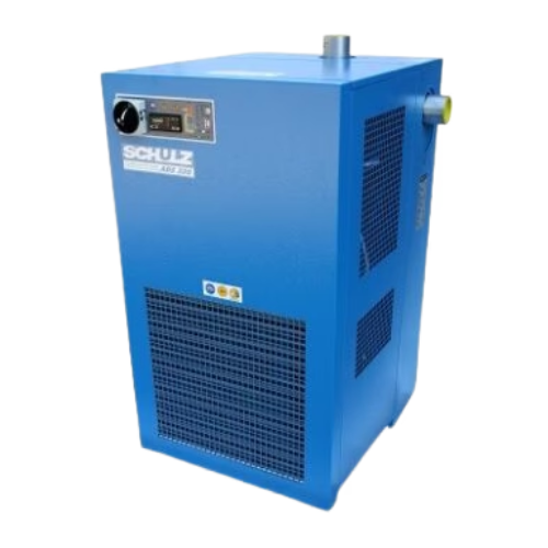 High-performance reliable and trouble-free compressed air treatment from SCHULZ. Dryer features; environmental friendly R134a/R407C refrigerant; simple control system, incorporating easy to read evaporator gauge; stainless steel heat exchanger providing long life and low pressure drops; compact design with staggered inlet/outlet ports for ease of installation; 3/4″ push-in condensate drain port .